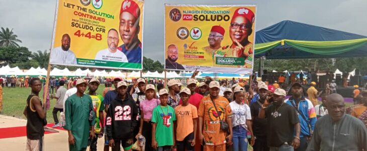 At the mega endorsement rally for Governor Soludo’s second tenure, organized by Anambra South Senatorial District on Saturday, 2nd of August, 2025 at the Ekwulobia Solution Stadium, Anambra State,many support groups stormed the Stadium for Soludo’s endorsement rally,Njagidi Foundation happened to be one of the support groups.